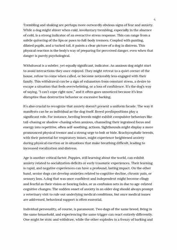 A comprehensive and science-based guide that helps dog owners understand, identify, and effectively reduce canine anxiety. This book explains the emotional roots of stress, behavioral signals such as pacing, chewing, vocalization, and withdrawal, and differences between forms of anxiety including separation anxiety, environmental stress, social stress, and anxiety from life changes. It offers practical step-by-step programs including desensitization training, counter-conditioning, creating safe spaces, managing triggers, improving independence, environmental enrichment, and positive reinforcement strategies. The book also covers calming accessories, pheromones, holistic therapies, adaptogens, professional behavioral assistance, and the importance of owner self-care while helping dogs build confidence, emotional resilience, and long-term security.